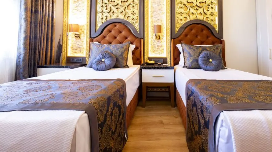 İki ayrı yatağın bulunduğu özel tasarımı ve şık mobilyalarla dizayn edilmiş Deluxe İki Ayrı Yataklı Oda, sizi eşsiz bir konfor ve lüks deneyime davet ediyor.